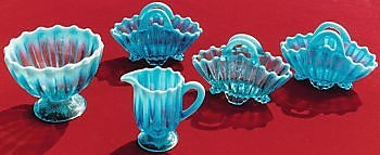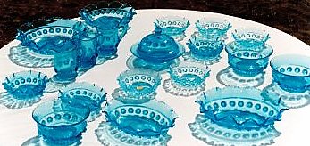 The same designs were used by Davidson's for all their colours during this period. Jade Glass, black opaque glass, and several colours of clear glass, as well as all the colours of Cloud Glass were made in these same shapes.